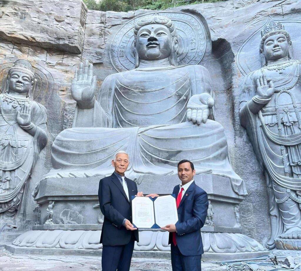 प्रतिष्ठानले एक दशकअघिदेखि खामीआमाकुसाको पहरामा मूर्ति बनाउन मूर्तिकार खोजिरहेको थियो । प्रतिष्ठानका लगानीकर्ता रहेको जापानी नागरिक ओसिमा शिजुकीलाई पनि भगवान गौतम बुद्धकै जन्मभूमिबाट मूर्तिकार ल्याएर मूर्ति निमार्ण गर्ने सपना थियो ।