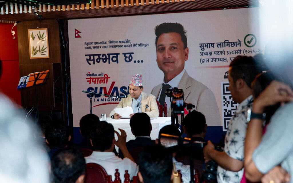 उम्मेदवारी घोषणा गर्दै अध्यक्षका प्रत्यासी सुभास लामिछाने।